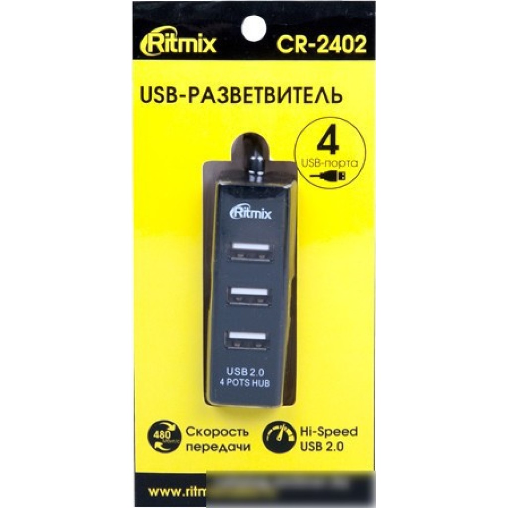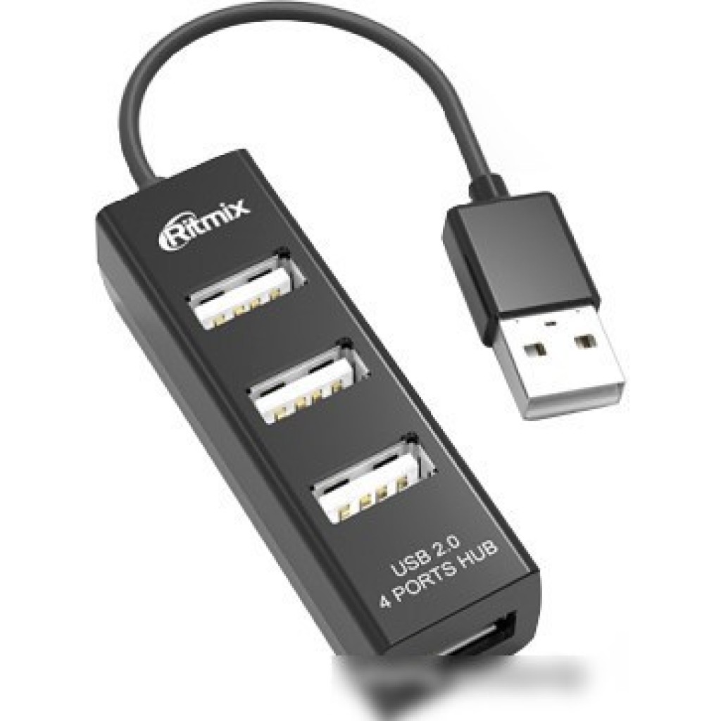 USB 2.0, 4 порта, пассивное питание, цвет черный