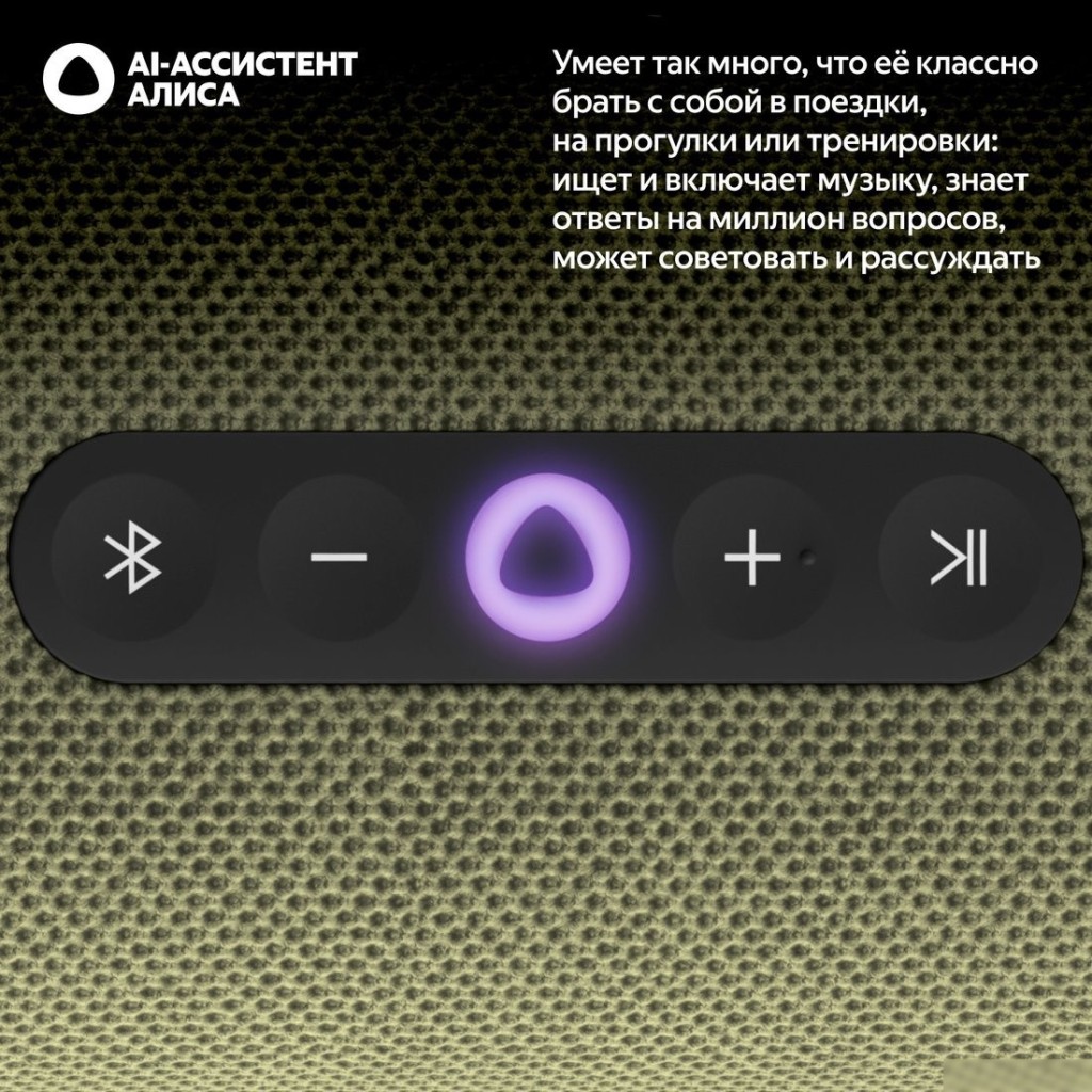 | Информация | - Яндекс Станция Стрит - первая портативная умная колонка Яндекса с мощным звучанием, AI-ассистентом Алисой и ёмким аккумулятором. Её удобно брать с собой куда угодно и управлять любимой музыкой голосом через Wi-Fi или Bluetooth. - Алиса умеет многое и станет полезной в поездках, на прогулках или тренировках. Она может включить плейлист для пикника, развлечь детей в дороге, засечь время на упражнение или подсказать, как определить стороны света. - Подключить колонку можно через Wi-Fi - используя мобильный интернет через точку доступа на смартфоне. Если Wi-Fi недоступен, подключение по Bluetooth позволит управлять воспроизведением с помощью голосовых команд, например: "Дальше", "Громче", "Стоп". - Звучание у Станции Стрит громкое, чистое и яркое. Два динамика и два пассивных излучателя обеспечивают мощность 30 Вт, создавая насыщенный звук. - Колонка адаптируется под окружающую среду. Для улицы и помещений предусмотрены разные режимы, доступные в приложении "Дом с Алисой". Также доступна функция автоопределения окружения. - Аккумулятор обеспечивает до 12 часов активной работы. При снижении заряда до 10% Алиса предупредит об этом, а быстрая зарядка за 30 минут обеспечит до 4 часов работы. - Устройство защищено от пыли и воды по стандарту IP67. Материал корпуса не выгорает на солнце. Если вода попадёт в зарядный разъём, Алиса напомнит просушить колонку. - В комплект входит съёмный ремешок с карабином. Колонку можно носить в руке, ставить вертикально или горизонтально, а также подвешивать, например, на рюкзак. - Обратите внимание, адаптер питания в комплект поставки не входит и приобретается отдельно. |