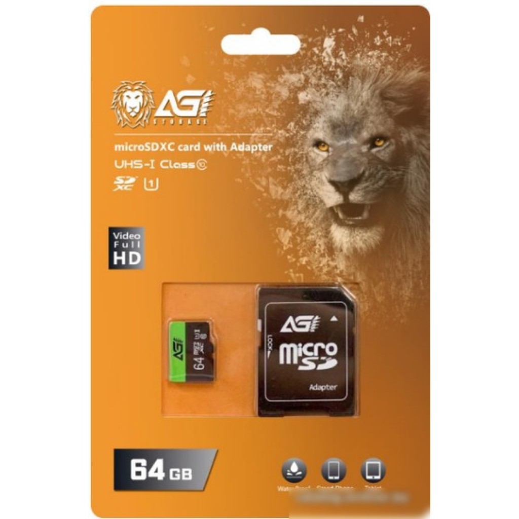 Карта памяти AGI TF138 microSDHC AGI064GU1TF138 64GB (с адаптером)