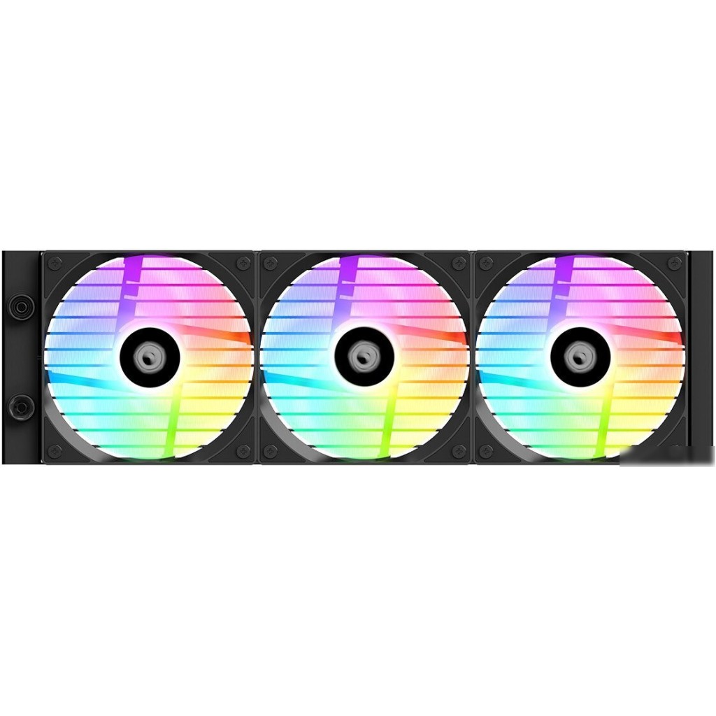 типоразмер 360, рассеивание до 350 Вт, высота 52 мм, вентилятор 120 мм, прямое направление потока, 2000 об/мин, PWM, подшипник гидродинамический (FDB), ARGB подсветка, макс. шум 27.2 дБ