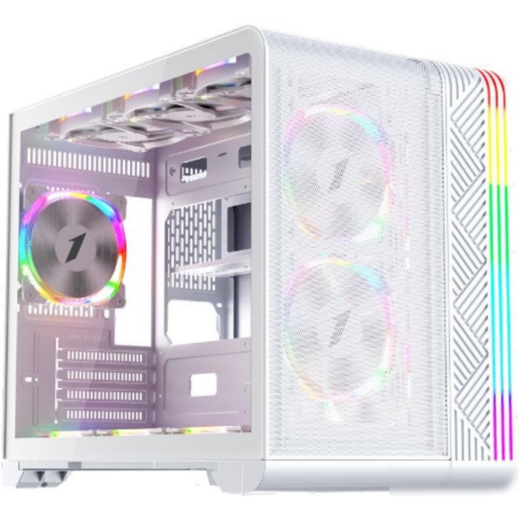| Информация | - 1STPLAYER VT6 – это современный компьютерный корпус с акцентом на высокую вентиляцию и поддержку мощных комплектующих. Его главная особенность – возможность установки до 11 вентиляторов и радиаторов СЖО до 360 мм сбоку и до 240 мм сверху, что обеспечивает эффективное охлаждение даже при сборке производительных систем. - Корпус выполнен из сочетания металла, пластика и закаленного стекла, что придаёт ему стильный внешний вид и прочность. Белый цвет корпуса отлично впишется в любой интерьер, а боковое окно из закаленного стекла позволит любоваться внутренней сборкой. - Фронтальная панель выполнена в виде металлической сетки, что способствует свободному прохождению воздуха и увеличивает продуваемость корпуса. Для удобства обслуживания предусмотрен выдвижной пылевой фильтр снизу, который легко снимается и очищается. - VT6 поддерживает установку материнских плат формата micro-ATX и mini-ITX, видеокарт длиной до 400 мм и процессорных кулеров высотой до 157 мм. На фронтальной панели расположены два порта USB 3.0, один USB 2.0 и комбинированный аудиоразъем, что обеспечивает удобное подключение периферии. |