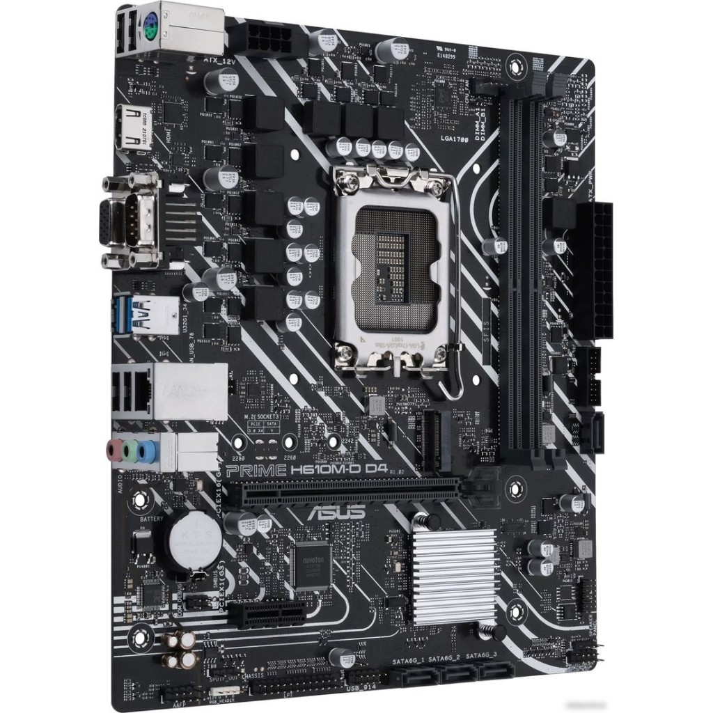 mATX, сокет Intel LGA1700, чипсет Intel H610, память 2xDDR4 до 3200 МГц, слоты: 1xPCIe x16 4.0, 1xPCIe x1, 1xM.2