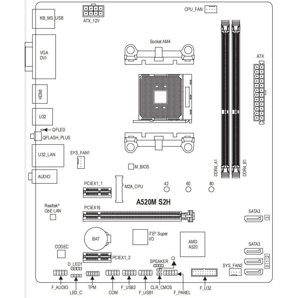 Материнская плата Gigabyte A520M S2H (rev. 1.0)