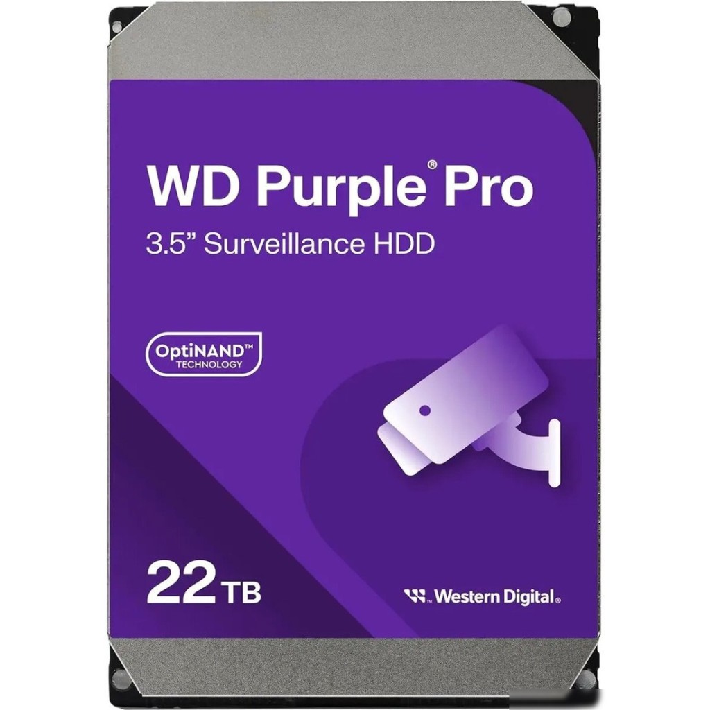 - Жесткий диск WD Purple Pro 22TB WD221PURP - надежное хранилище для видеонаблюдения и систем видеозаписи.