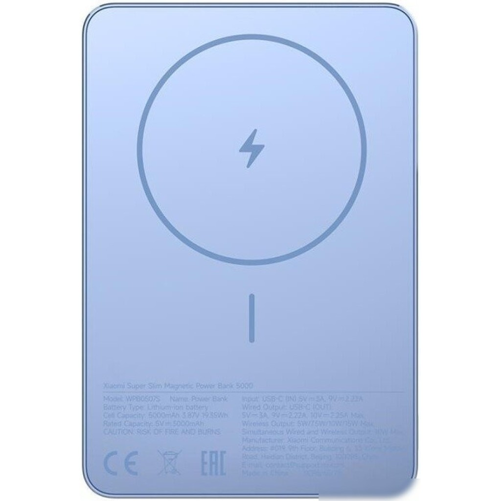 Внешний аккумулятор Xiaomi Super Slim Magnetic Power Bank 5000mAh WPB0507S (голубой, международная версия)
