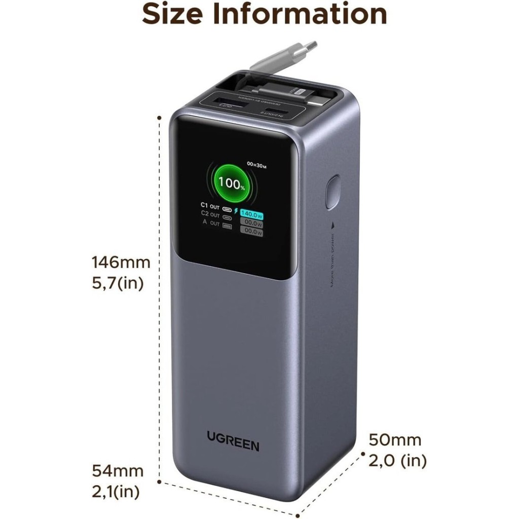 | Информация | -Ключевые характеристики Портативное зарядное устройство с емкостью 20000 мАч и максимальной выходной мощностью 165 Вт предназначено для быстрой подзарядки ноутбуков, смартфонов и других гаджетов. Оснащено тремя выходами:USB Type-C с поддержкой до 100 Вт, USB Type-A, а также встроенным USB Type-C кабелем длиной до 65 см, что удобно для зарядки в пути. -Преимущества и отличия Высокая мощность позволяет одновременно заряжать несколько устройств, включая ноутбук и смартфон. Интегрированный смарт-дисплей отображает актуальные параметры заряда, а система многоуровневой защиты обеспечивает безопасность при использовании. -Практичность Устройство совместимо с большинством популярных моделей телефонов, планшетов и ноутбуков благодаря поддержке универсальных стандартов быстрой зарядки, включая Power Delivery и Quick Charge. Встроенный кабель избавляет от необходимости носить дополнительные провода. -Уникальность Применение автомобильных литий-ионных ячеек обеспечивает надежность и долгий срок службы, а разрешенная для авиаперевозки емкость делает устройство отличным выбором для путешествий и командировок. Читать дальше |