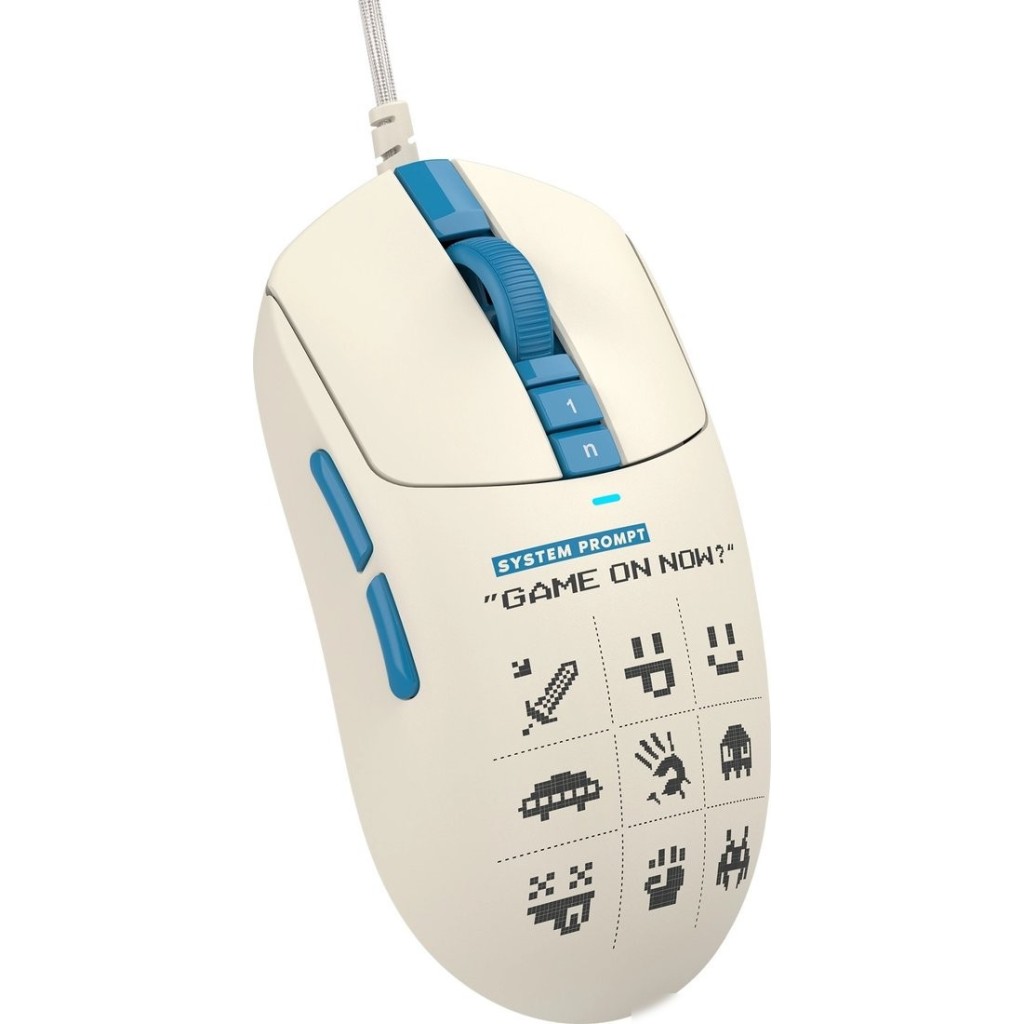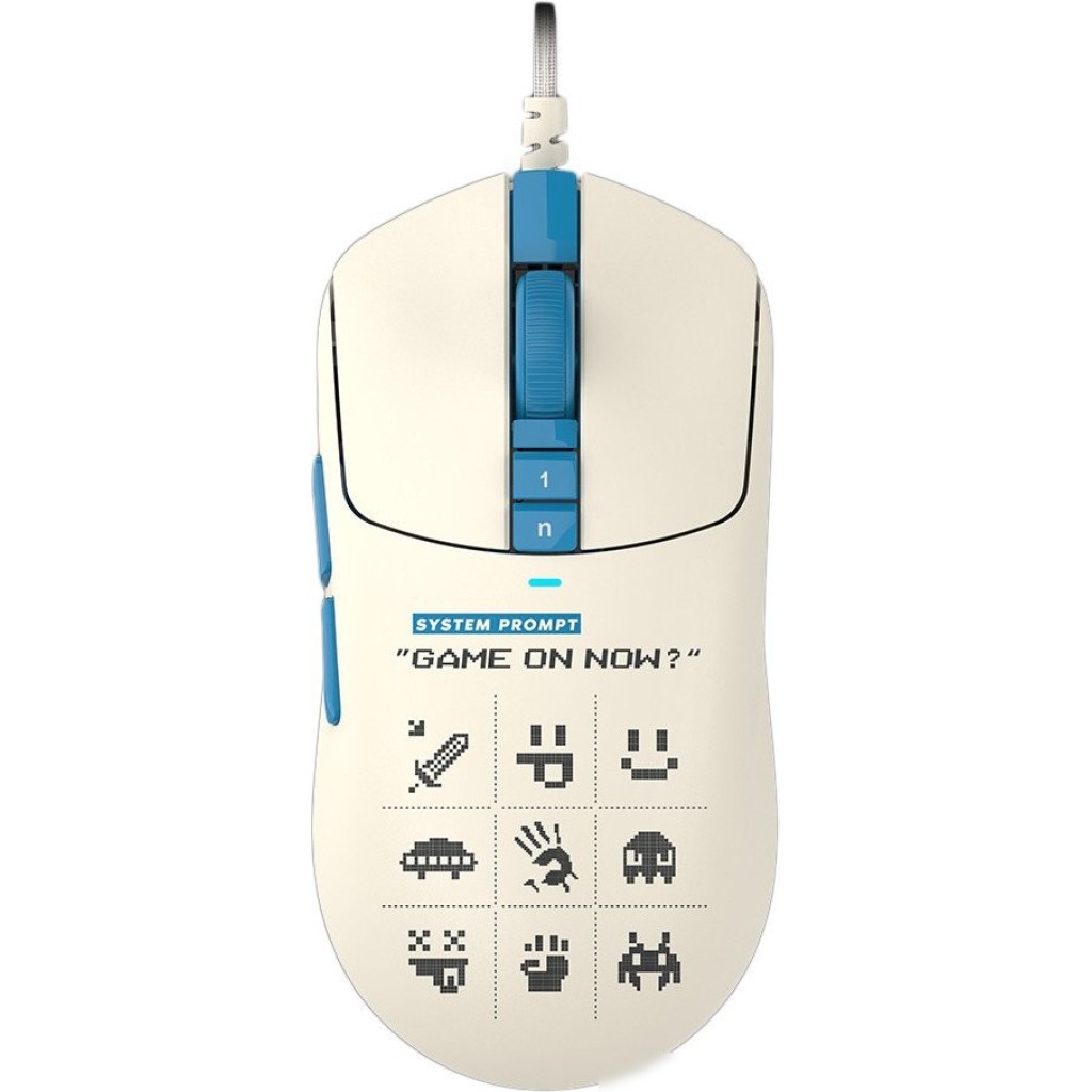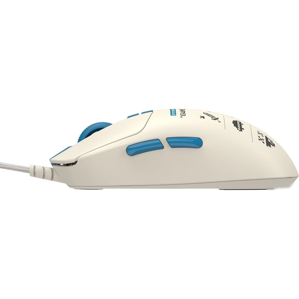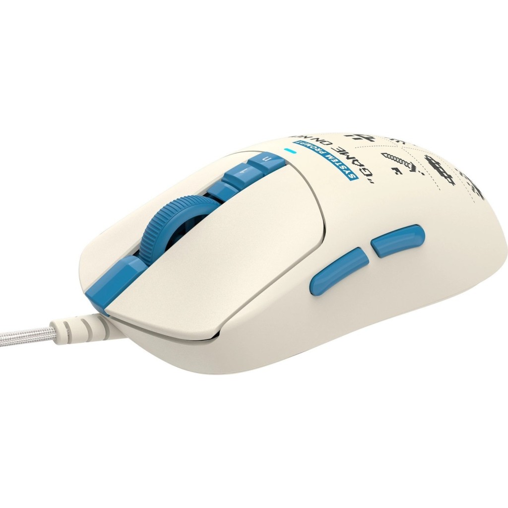 полноразмерная игровая мышь, проводная USB Type-A, сенсор оптический 20000 dpi, 9 кнопок, колесо с нажатием, цвет бежевый/голубой/цветной принт