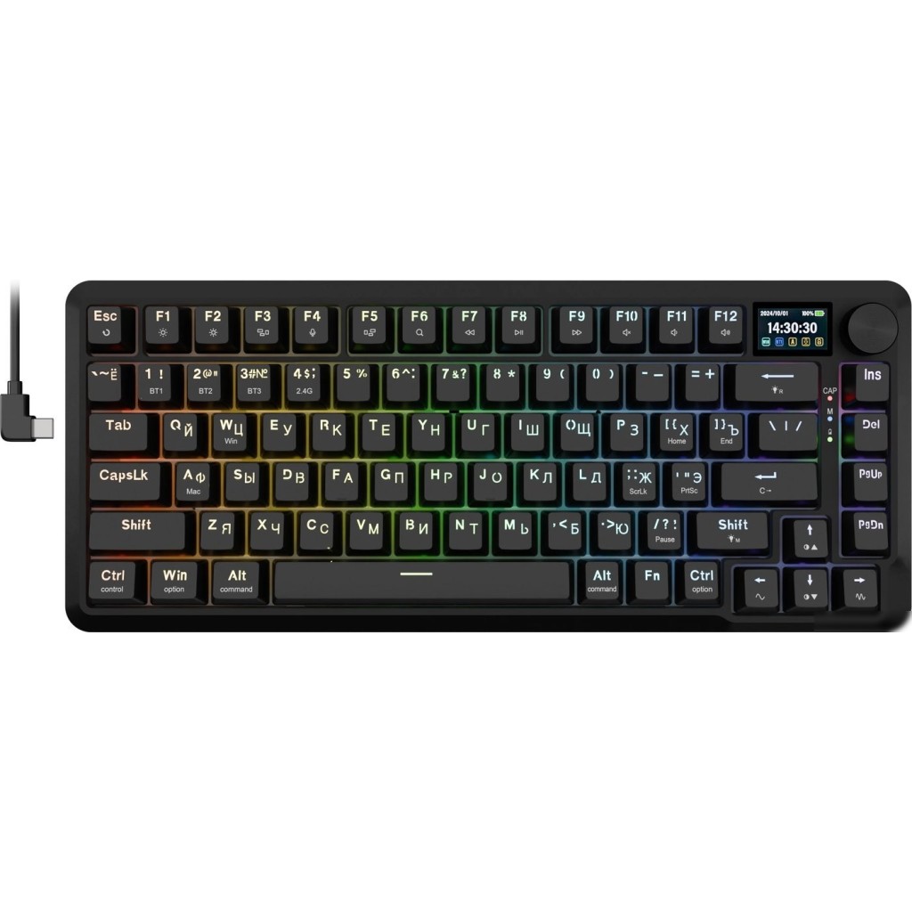 | Информация | LCD-дисплей, три режима подключения (2.4G, BT, провод), gasket-mount, RGB-подсветка и шумоизоляция — за основой идеального тайпинга. А сверху — особенный аниме-дизайн, который превращает клавиатуру в настоящий арт-объект. |