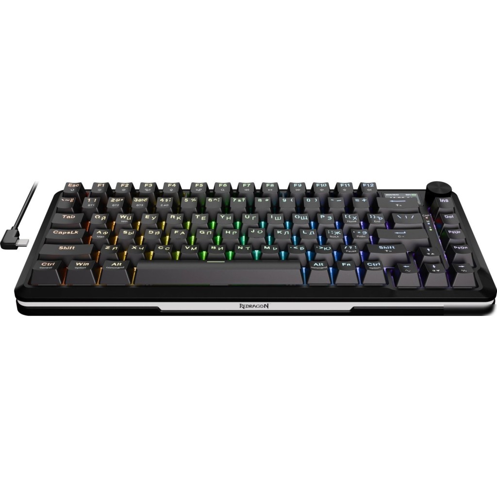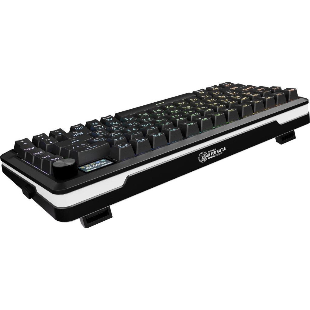 игровая для ПК, механическая, Redragon Leopard, ход линейный, пластик, интерфейс подключения - USB-A/радио/Bluetooth/USB-C, кириллица: да, цвет черный/белый