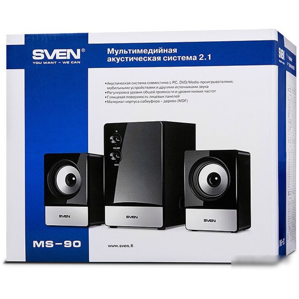 | Информация | Мультимедийные колонки SVEN MS-90 – отличное решение для практичных ценителей качественной компьютерной периферии. Несмотря на миниатюрные размеры, SVEN MS-90 обладает неожиданно низким и глубоким басом благодаря использованию отдельного 5-ваттного сабвуфера. Насыщенный звук и хорошую детализацию обеспечивают 60-миллиметровые широкополосные динамики сателлитов. |