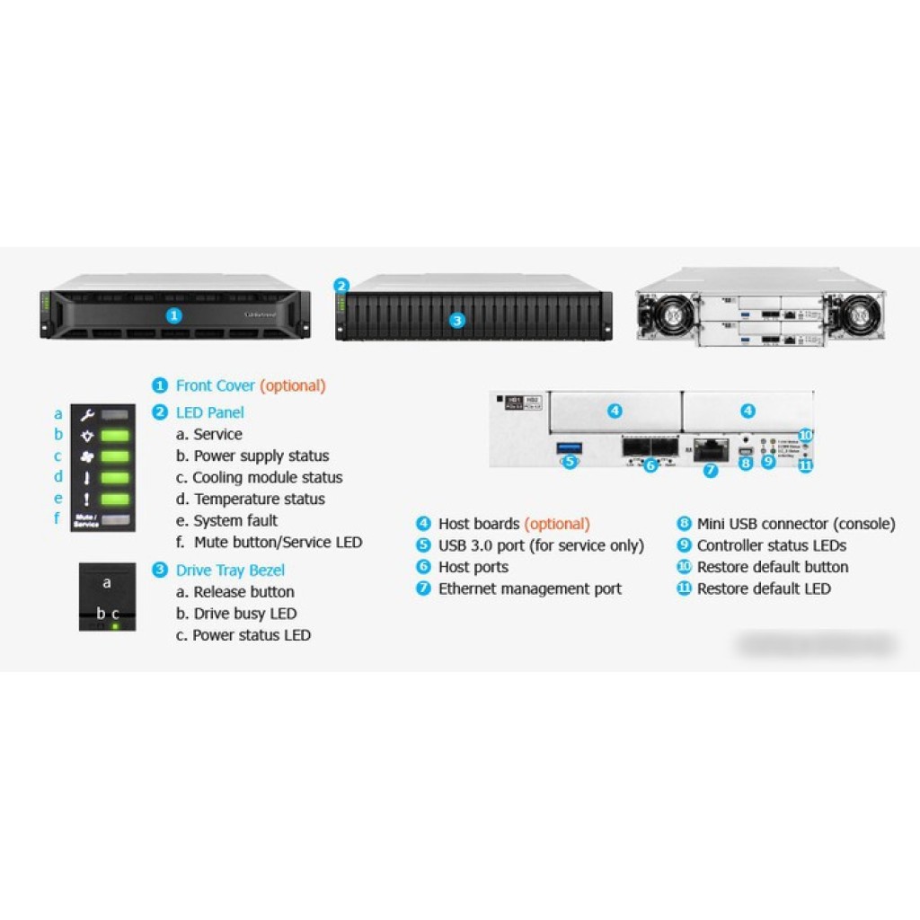 24 x 3.5" SATA 3.0, RAID 1/3/5/6/10/30/50/60, hot swap, охлаждение воздушное, LAN 4x 25 Гбит/с, 2x USB-A 3.2 Gen1