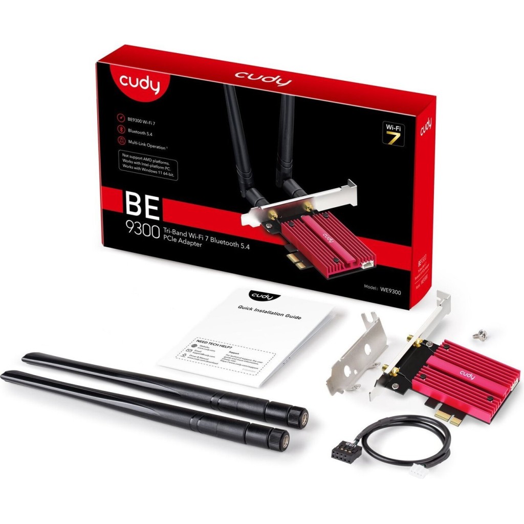 Информация-Адаптер Cudy WE9300 1.0 - это современное решение для высокоскоростного беспроводного подключения, созданное на базе чипа Intel BE200 с поддержкой Wi-Fi 7 и Bluetooth 5.4. Благодаря использованию технологии MLO, устройство способно одновременно работать в двух диапазонах (2.4 ГГц + 5 ГГц, 2.4 ГГц + 6 ГГц или 5 ГГц + 6 ГГц), обеспечивая стабильное мультигигабитное соединение и высокую производительность для требовательных задач.